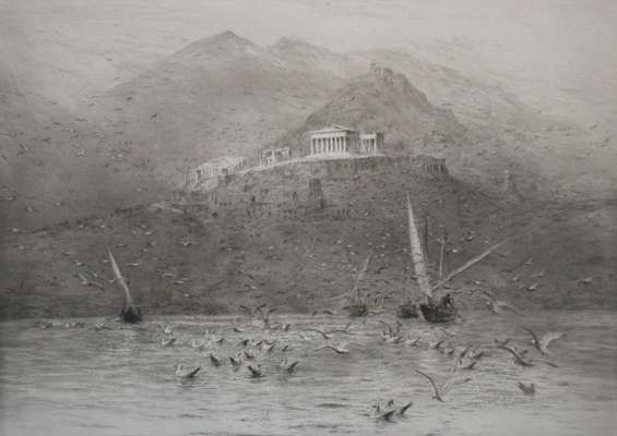 24cm x 51cm and a companion by the same hand, 'Grecian Temple on a Hill Top' (2)