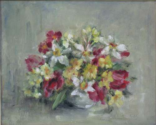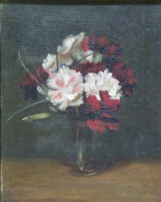 STILL LIFE WITH RED AND WHITE CARNATIONS