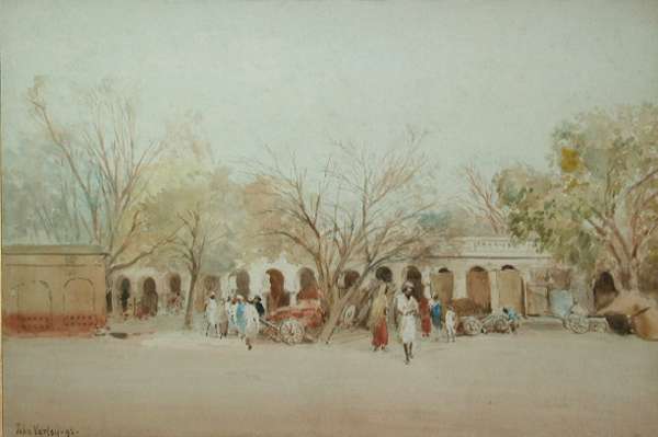 35cm x 52cm and another by the same hand, 'A Bazaar, Luknow', a pair (2)