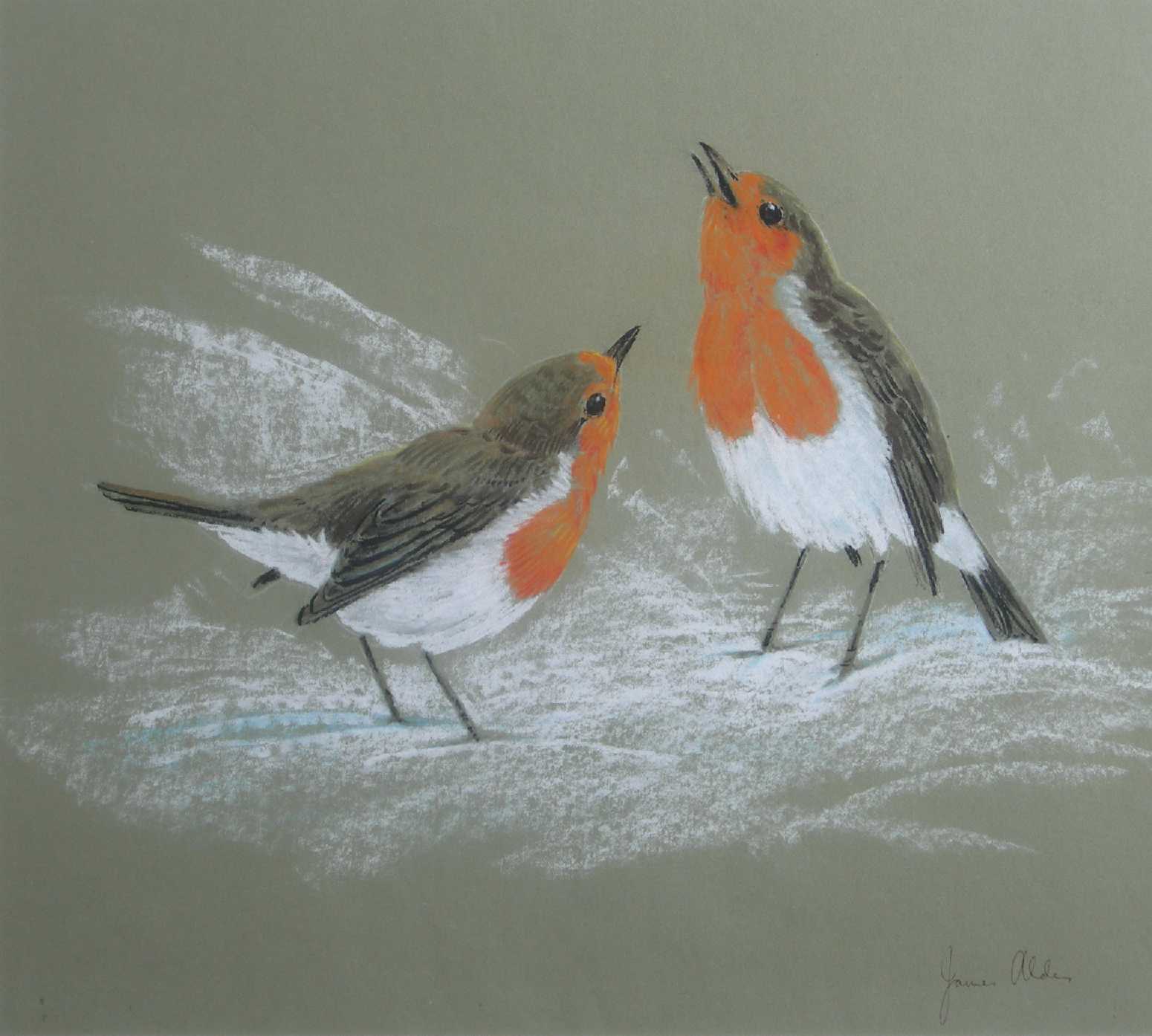 TWO ROBINS IN THE SNOW