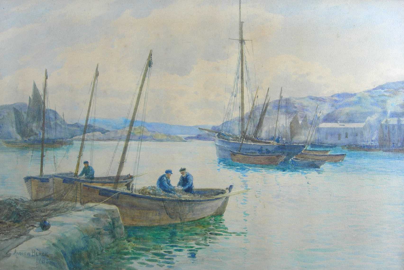FISHERMEN MENDING THEIR NETS, TARBERT, LOCH FYNE