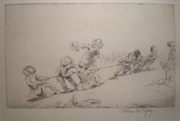 11cm x 18cm (4.25in x 7in) and another by the same hand, 'Tug of War' (2)