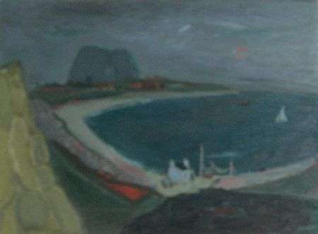 61cm x 91cm (24in x 36in) and another two by the same hand, 'Bay at night' and 'Downend' (3)