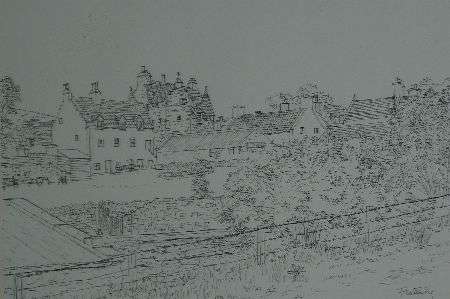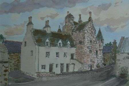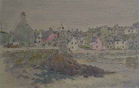 37cm x 53cm (14.5in x 21in) and another six by the same hand 'Fordyce Castle', 'Painswick', ''Painswick from South', 'Portsoy', 'Macduff Harbour' and 'Fordyce Castle' (7)