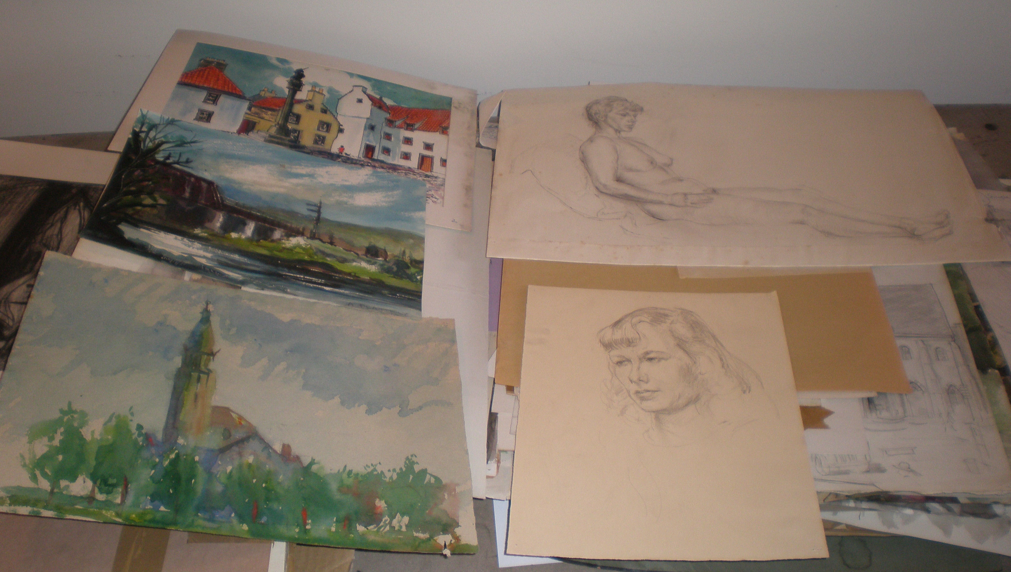 A QUANTITY OF SKETCH BOOKS AND DRAWINGS, MANY LIFE STUDY ONES.