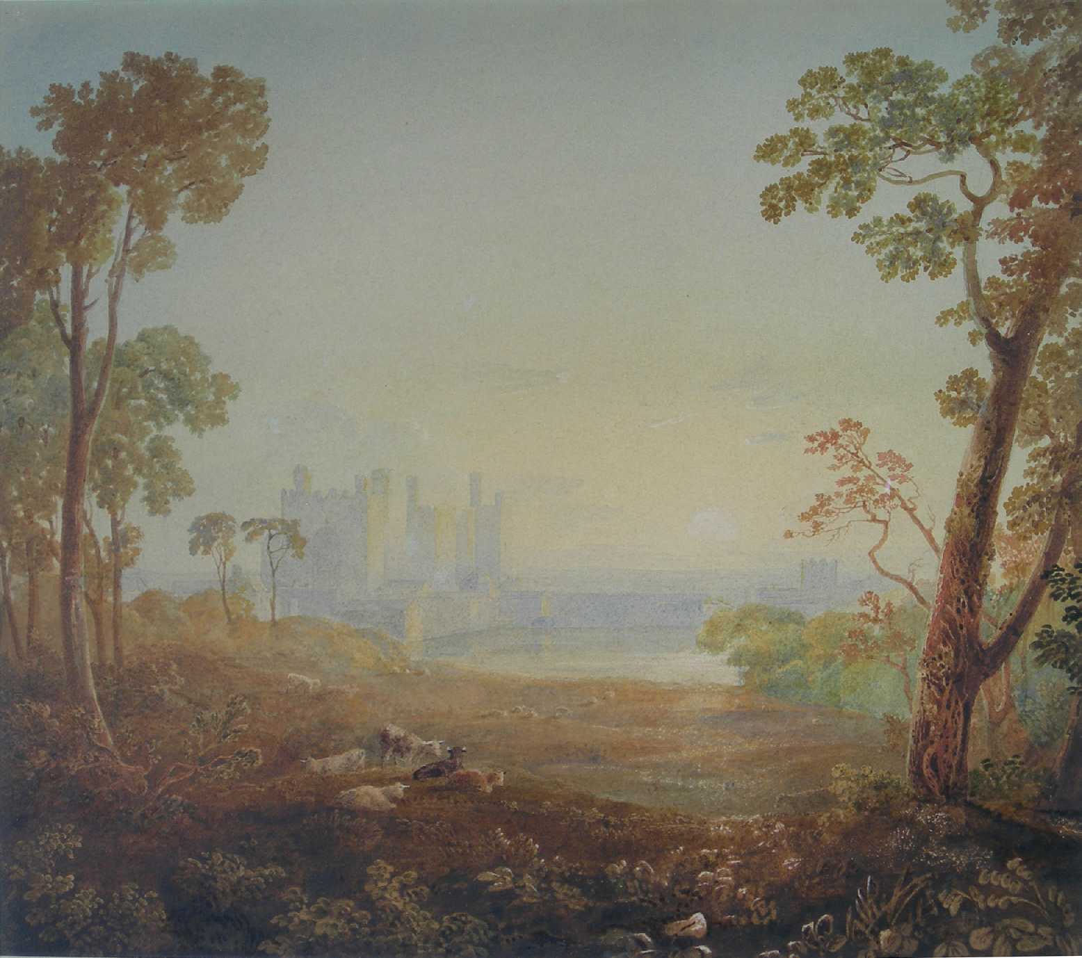 CASTLE AT DUSK WITH SHEEP IN THE FOREGROUND