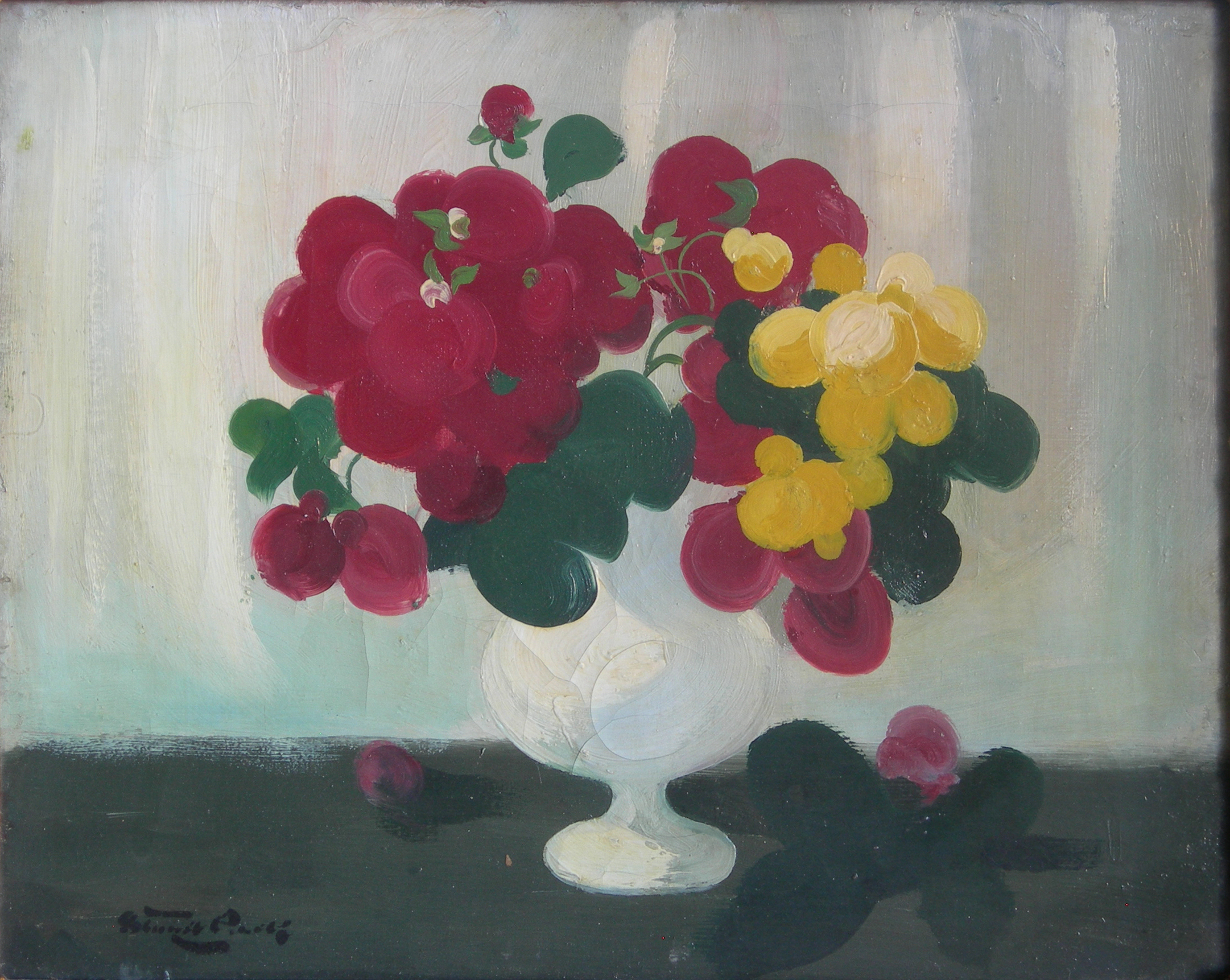 STILL LIFE, CRIMSON AND YELLOW BLOOMS