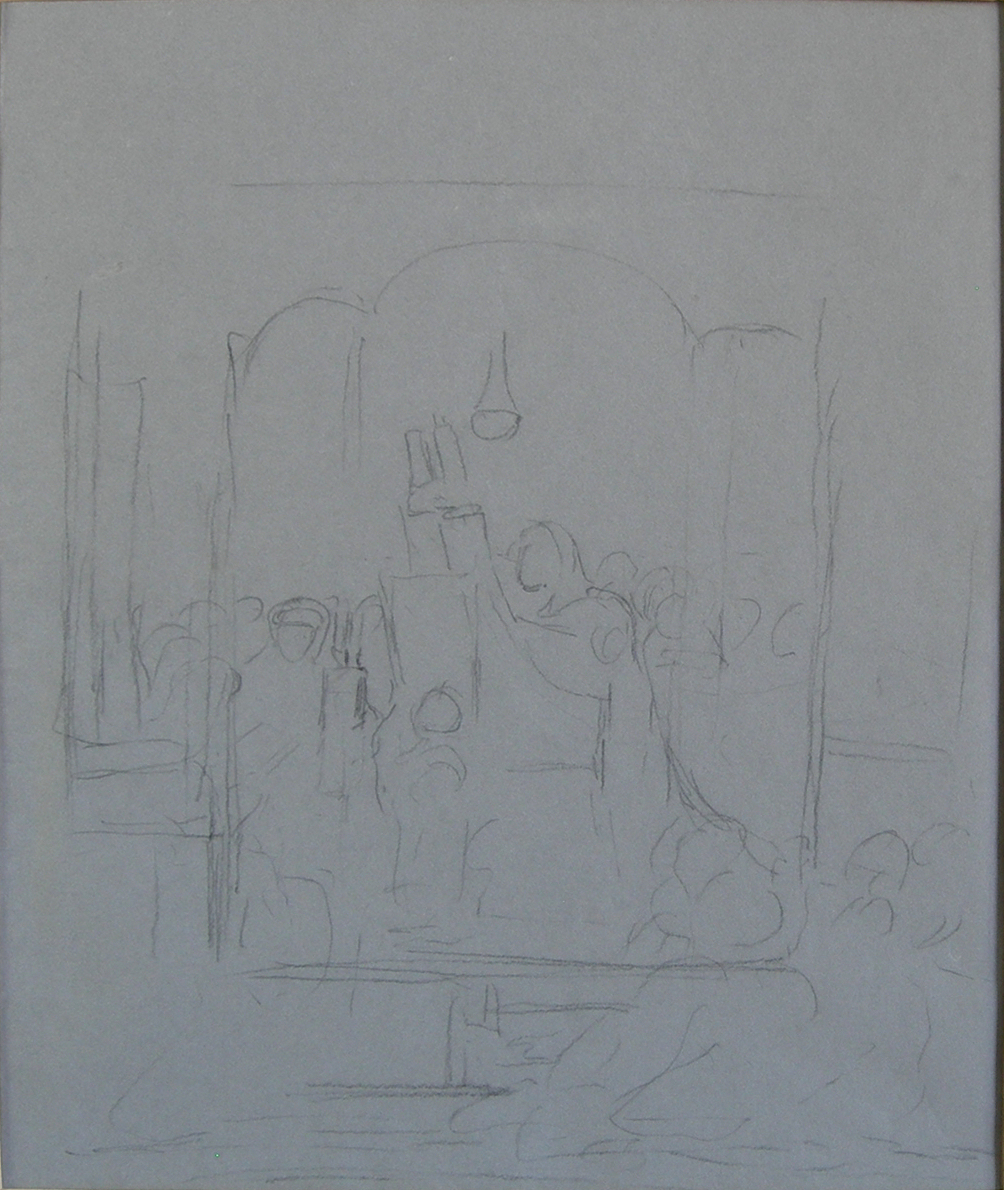 Note: Drawn on the artist's final voyage, during which he made several visits to synagogues, as noted in his journal of March 17th, 1841: 'Went out early with Mr. Woodburn and Reuben to the Synagogue; made drawing'.
