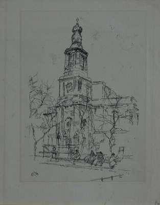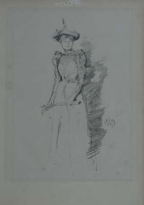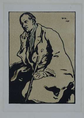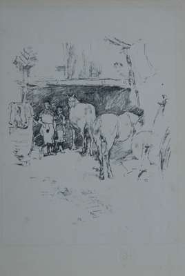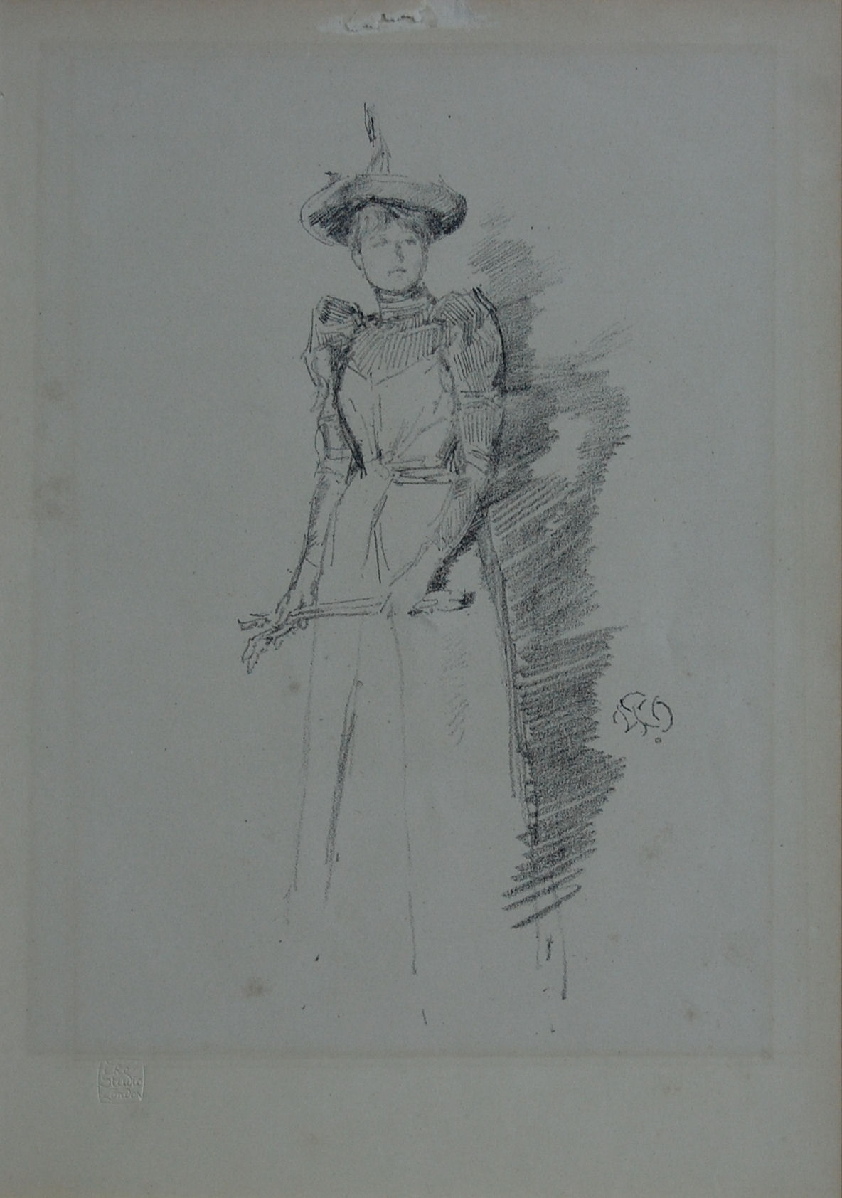 Lithograph, published in 'The Studio' and stamped with their blindstamp, signed in the plate with butterfly cipher, and another twelve works including: 'The Smith's Yard', 'La Robe rouge', 'Savoy Pigeons', 'La Longue Galerie du Louvre', 'St. Anne's Soho', 'The Salute, Venice', 'Sunset, Venice', 'Portrait of Johanna Heffernan', 'The Cabriolet' and 'Portrait of James Pryde' by William Nicholson, 'Portrait Study of W P Nicholson' by James Pryde, and 'St Paul's Over Waterloo' by Joseph Pennell, all unframed