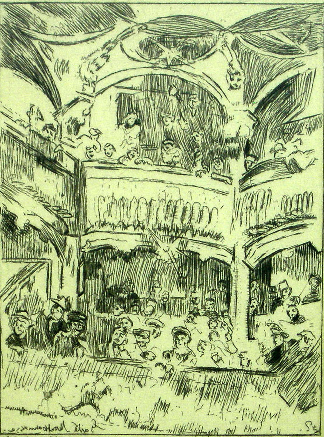 Etching, signed with initials ST in the plate and inscribed (in reverse) in the plate, and signed 'Sickert inv del et sc' and inscribed underneath image