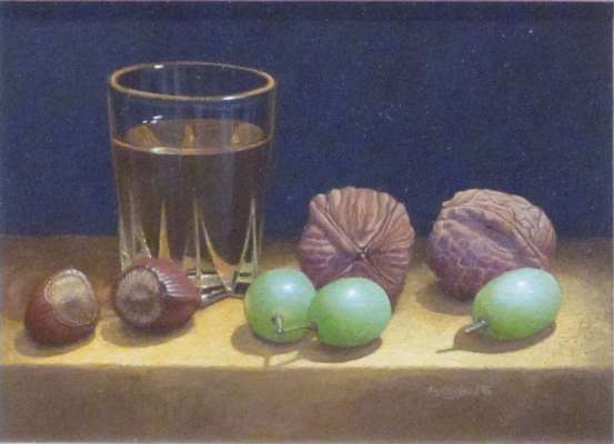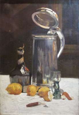 STILL LIFE WITH WHISKEY, GRAPES AND WALNUTS