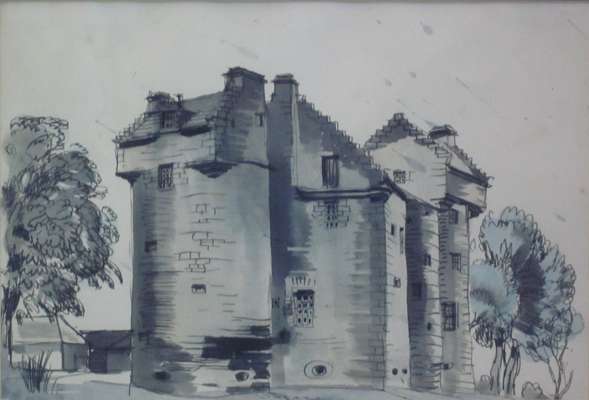 20cm x 27.5cm (8in x 10.75in) and an ink drawing of a castle by the same hand (2)