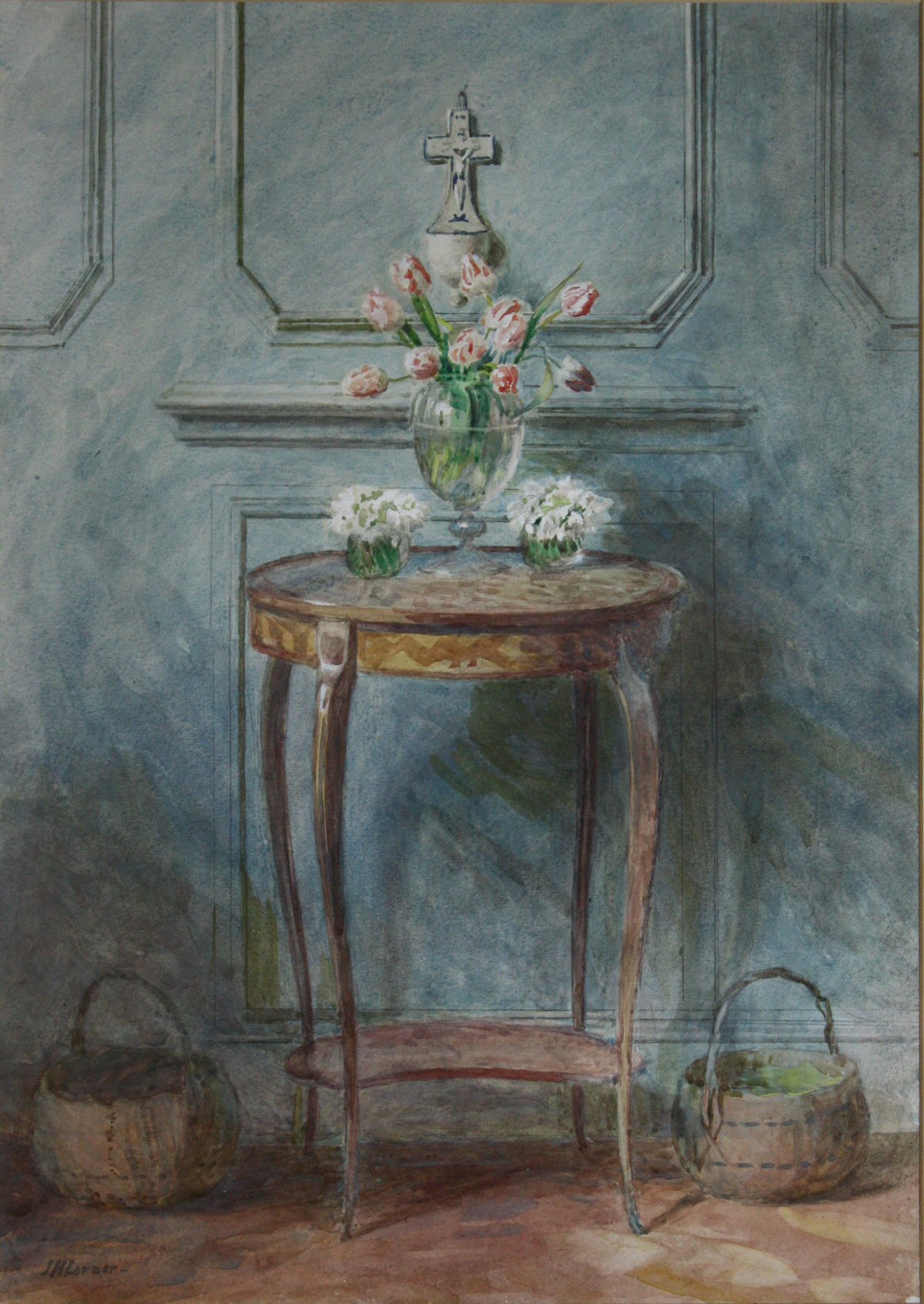 Signed, signed and inscribed with title label verso, watercolour and bodycolour