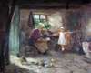FARMHOUSE INTERIOR WITH CHICKS FEEDING