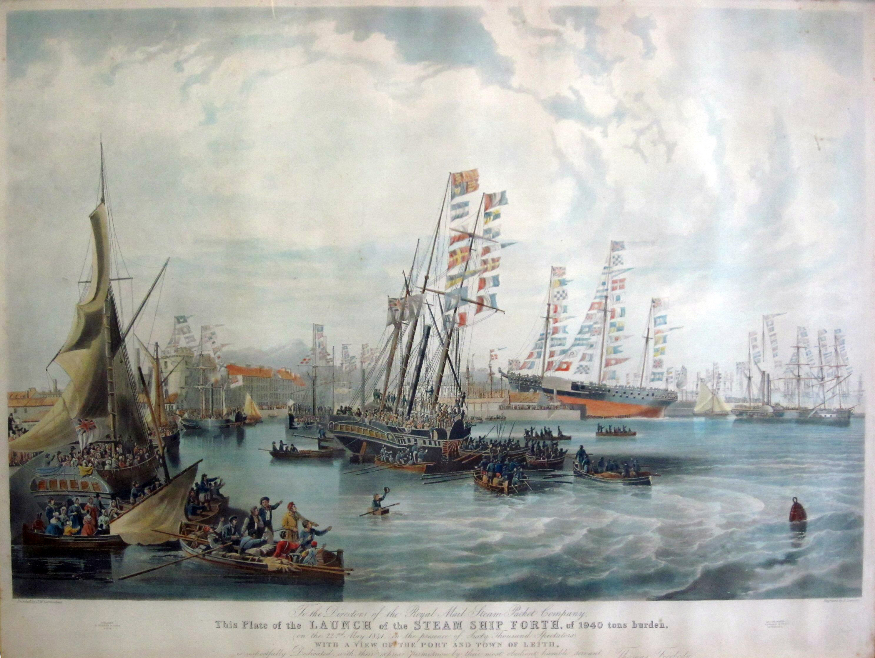 THE LAUNCH OF THE STEAM SHIP FORTH, WITH VIEWS OF THE PORT AND TOWN OF LEITH