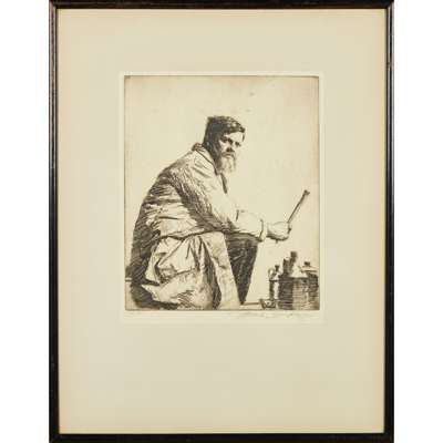 PORTRAIT OF FRANK BRANGWYN R.A., HOLDING A PAINTBRUSH