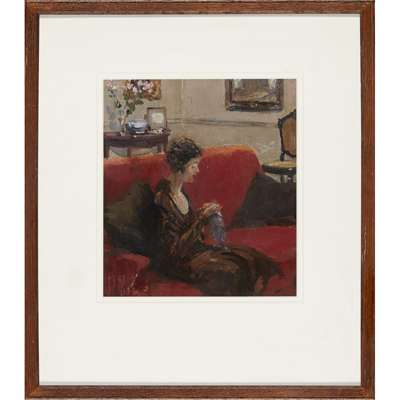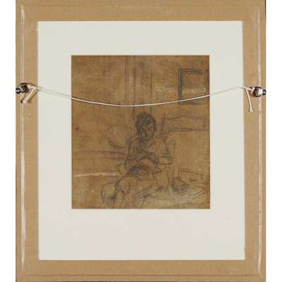 Further pencil sketch of a lady sewing verso, oil on board