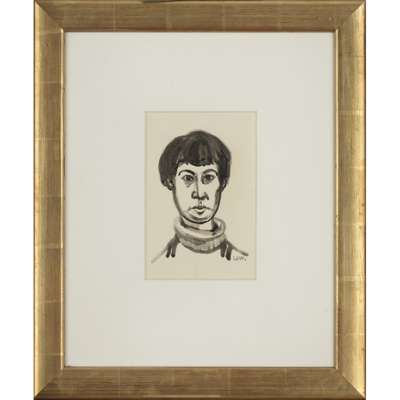 Signed, signed and inscribed with title and dated c.1954/56 on artist's label verso, ink and wash, studio stamped frame verso