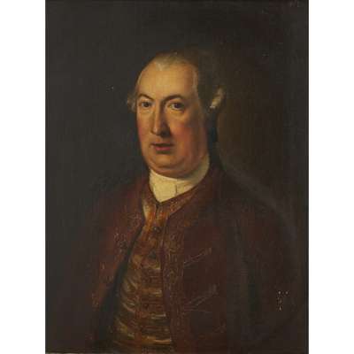 HALF LENGTH PORTRAIT OF A GENTLEMAN IN AN EMBROIDERED JACKET AND WAISTCOAT