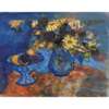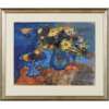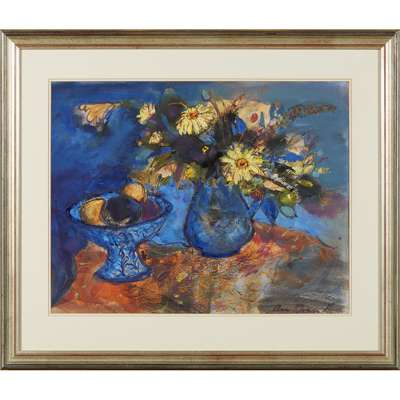 FLOWERS AND FRUIT ON BLUE AND ORANGE