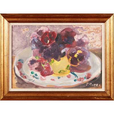 PANSIES IN A YELLOW VASE