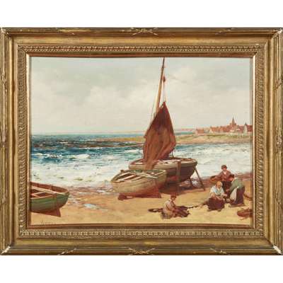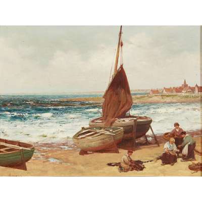 33.5cm x 44cm (13.25in x 17.25in) and another, a pair 'Mending the Nets' (2)