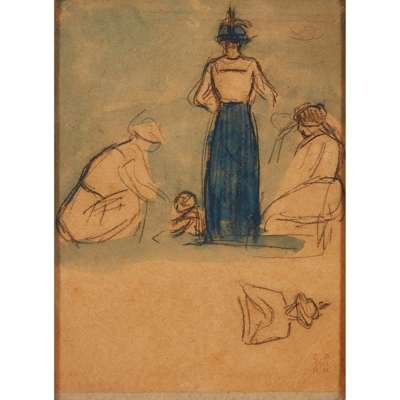 11cm x 13.5cm (4.25in x 5.5in) with two further sketches by the same artist
