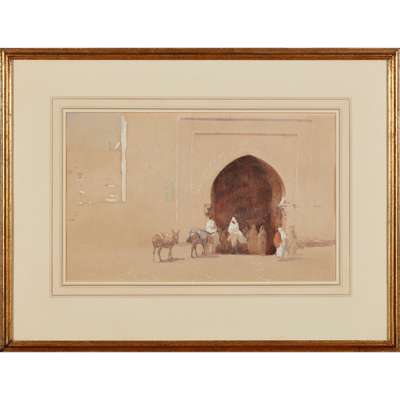 ARABIC CITY WALL ENTRANCE WITH FIGURES AND MULES