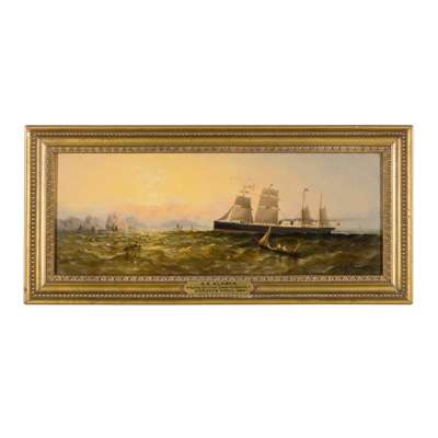 Signed and dated 1884, inscribed verso 'Last view of Ireland', oil on panel