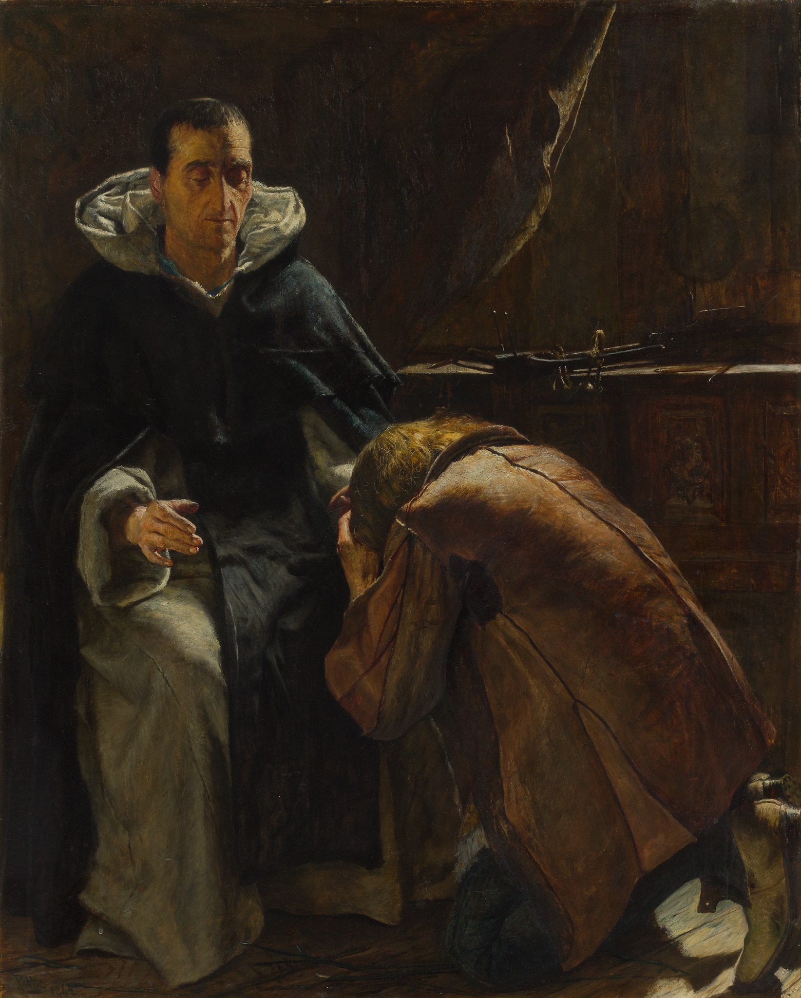 Note: This painting depicts a scene from 'The Monastry' by Sir Walter Scott published in 1820.