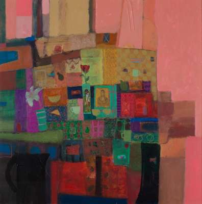 Signed, signed and inscribed with title stretcher verso, mixed media on canvas
