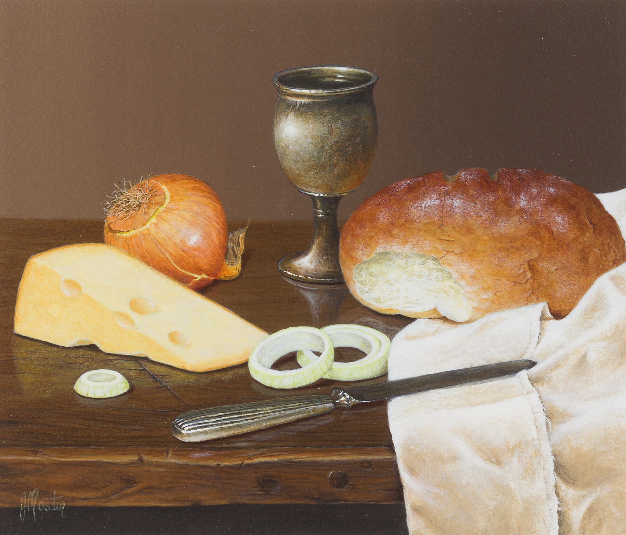 STILL LIFE WITH CHEESE, BREAD AND ONION