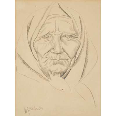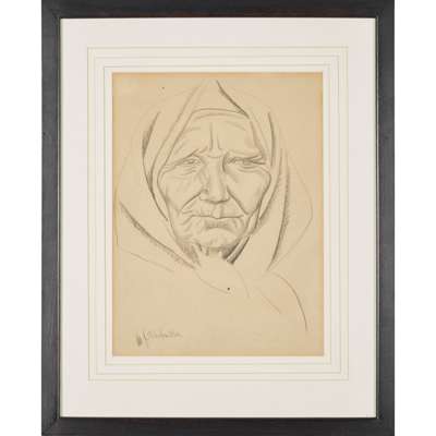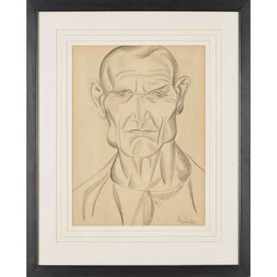 Signed, conté drawing, and another conté drawing of a man by the same hand (2)