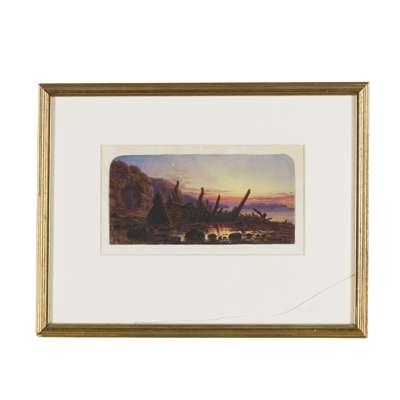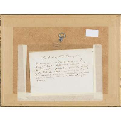 Signed and dated 1868, inscribed on a note attached verso, watercolour, arched top