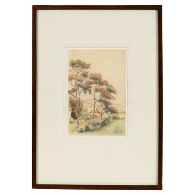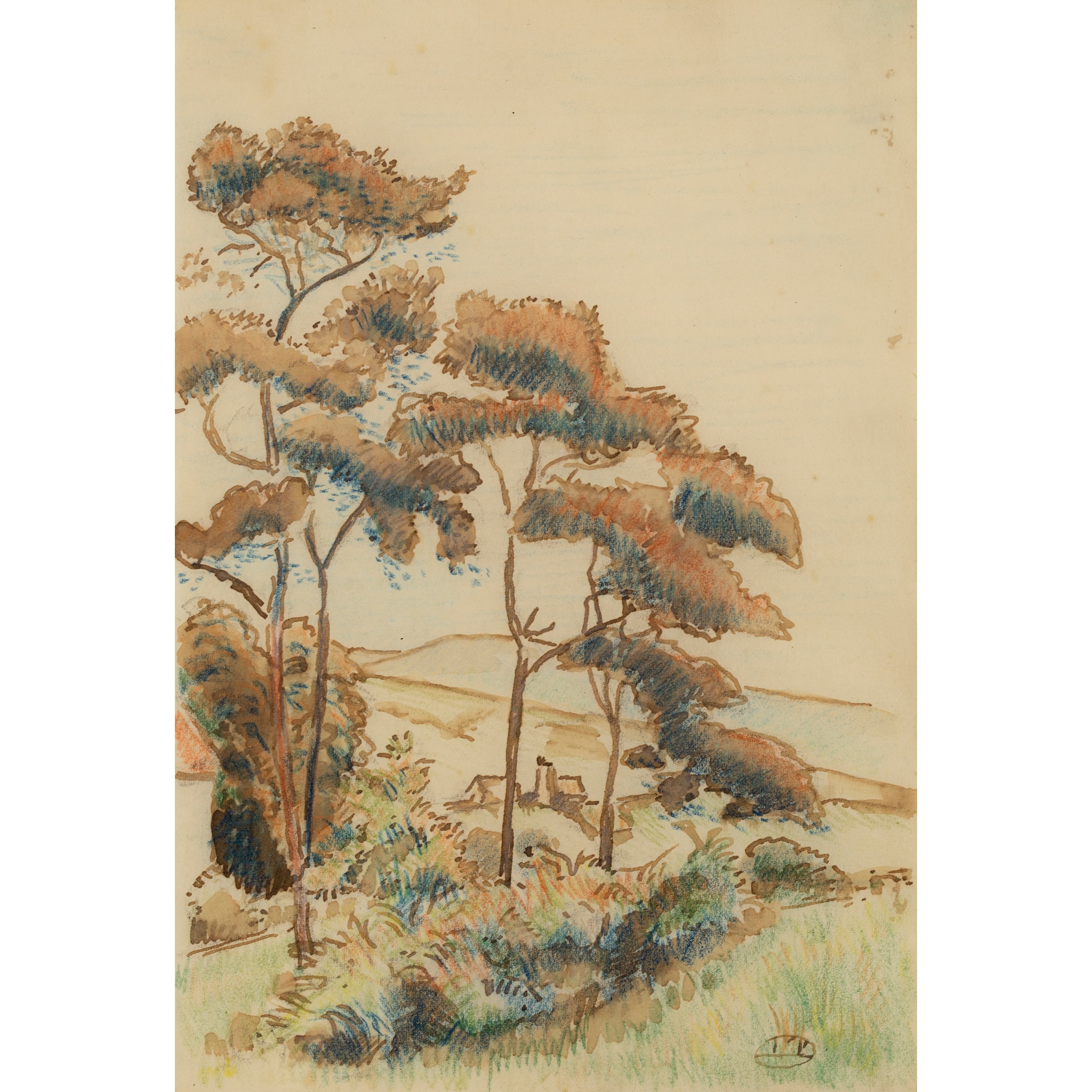 Monogrammed (lower right), crayon, ink and wash