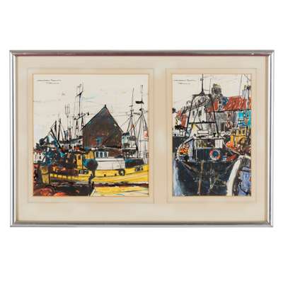 Signed and inscribed 'Pittenweem' upper left, ink and pastel on paper