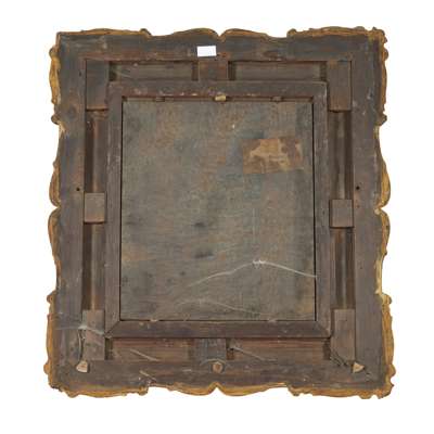 Signed, oil on panel, arched top
