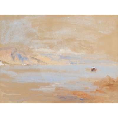 and a companion, 'Boating on the Lake', watercolour and pastel on buff paper;