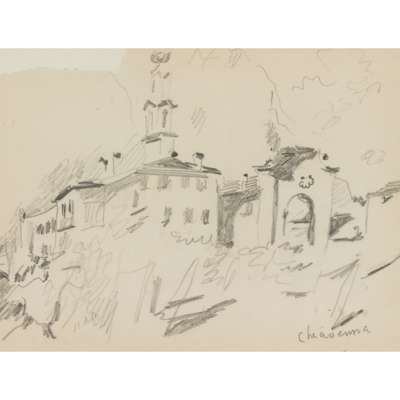 and a companion, 'Chiavenna, Italy', signed lower left, inscribed lower right, pencil sketch