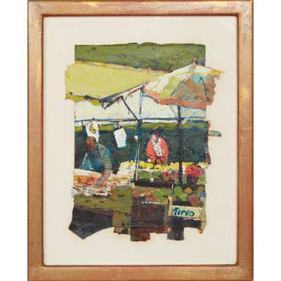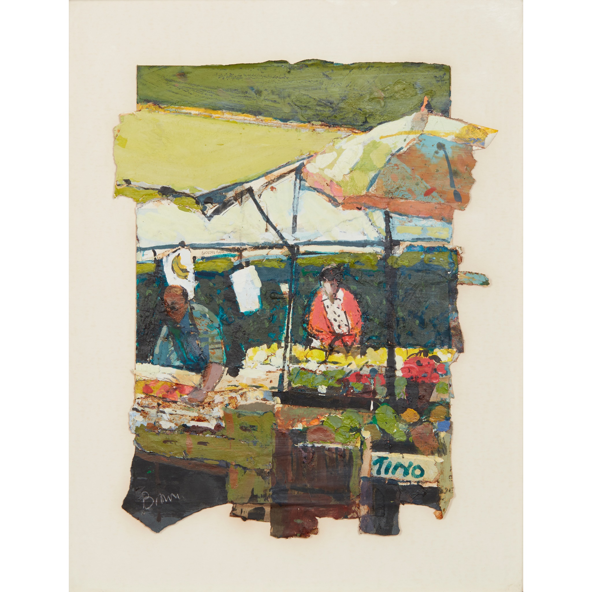 Signed lower left, mixed media with collaged elements