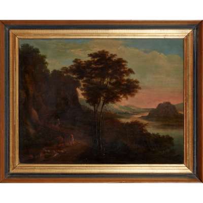 AN ITALIANATE LANDSCAPE WITH FIGURE DRIVING ANIMALS
