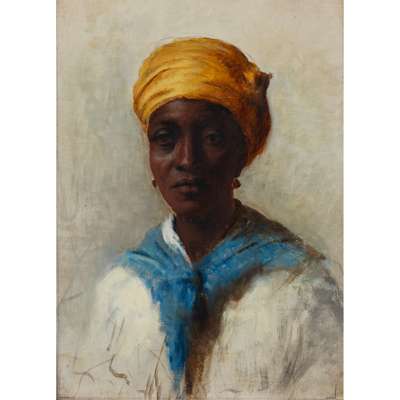 A BLUE SHAWL, A YELLOW HEADDRESS