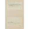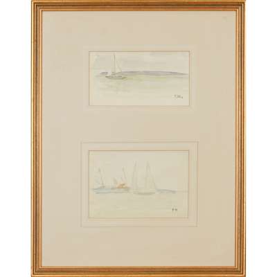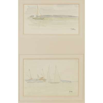 and a companion, two studies mounted together, each inscribed 'P.M.' lower right, watercolour and pencil