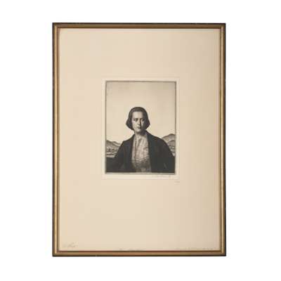 Brockhurst had experimented with printmaking in the 1910s, but it was not until the early ‘20s that he committed to etching in earnest. In a market increasingly oversaturated with etchings of landscapes and urban views, Brockhurst concentrated on portraiture, many of which were transpositions of compositions he had painted in the late 1910s and early ‘20s. He soon achieved distinction for his rendering of skin, hair and textiles with astonishing naturalism. Each composition is imbued with a refined stillness, with flesh that appears almost to glow and to possess conceivable weight and mass.