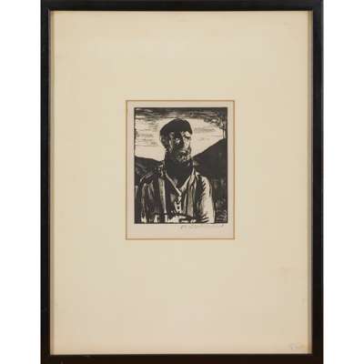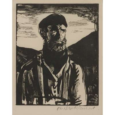 A MOUNTAIN MAN, Woodcut, signed with monogram in print, signed in pencil to margin