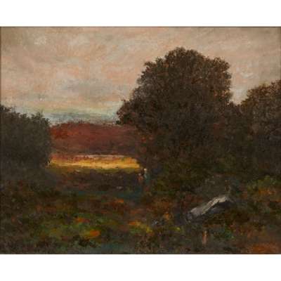 NEW ENGLAND LANDSCAPE WITH FIGURES