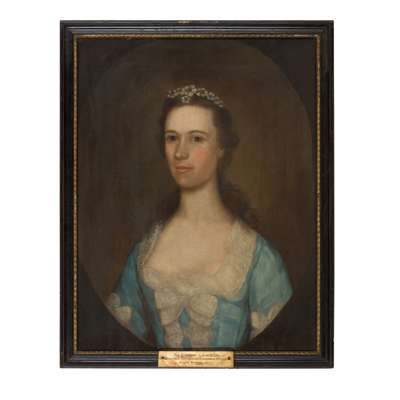 Inscribed on a label 'Barbara Lawson, daughter of John Lawson of Cairnmuir', feigned oval, oil on canvas