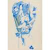 Watercolour, blue ink on paper