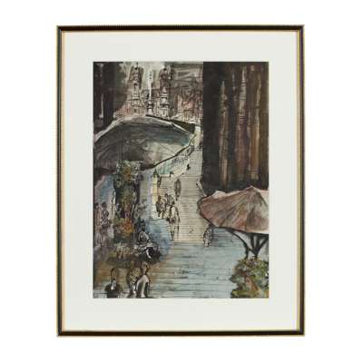 Signed lower right, mixed media on paper