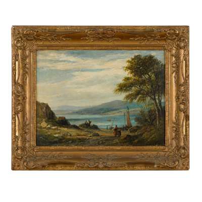 FIGURES AND FISHING BOATS ON THE BANKS OF A LOCH